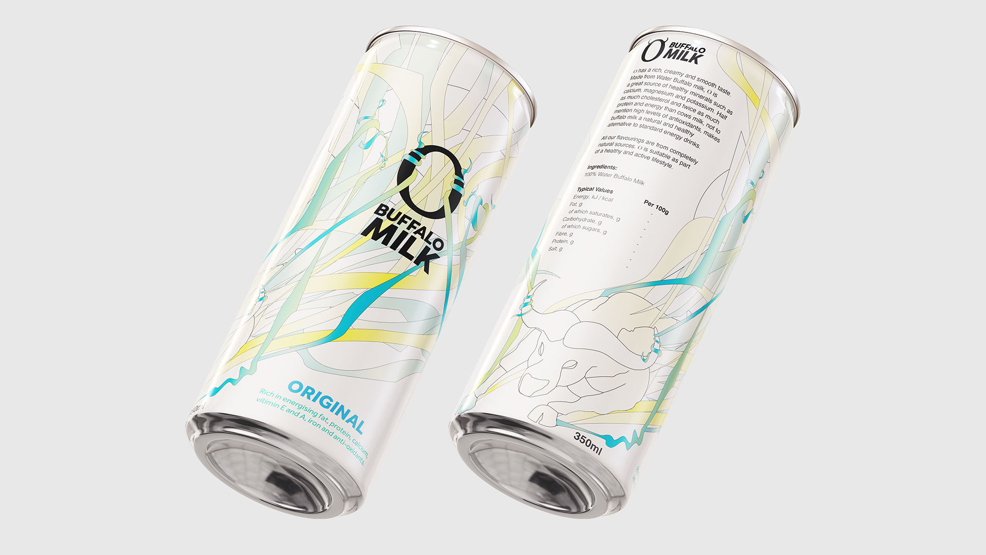 This project was a competition brief for packaging design agency JonesKnowlesRitchie to brand Buffalo Milk, which can be considerably more nutritious than ordinary cow's milk.