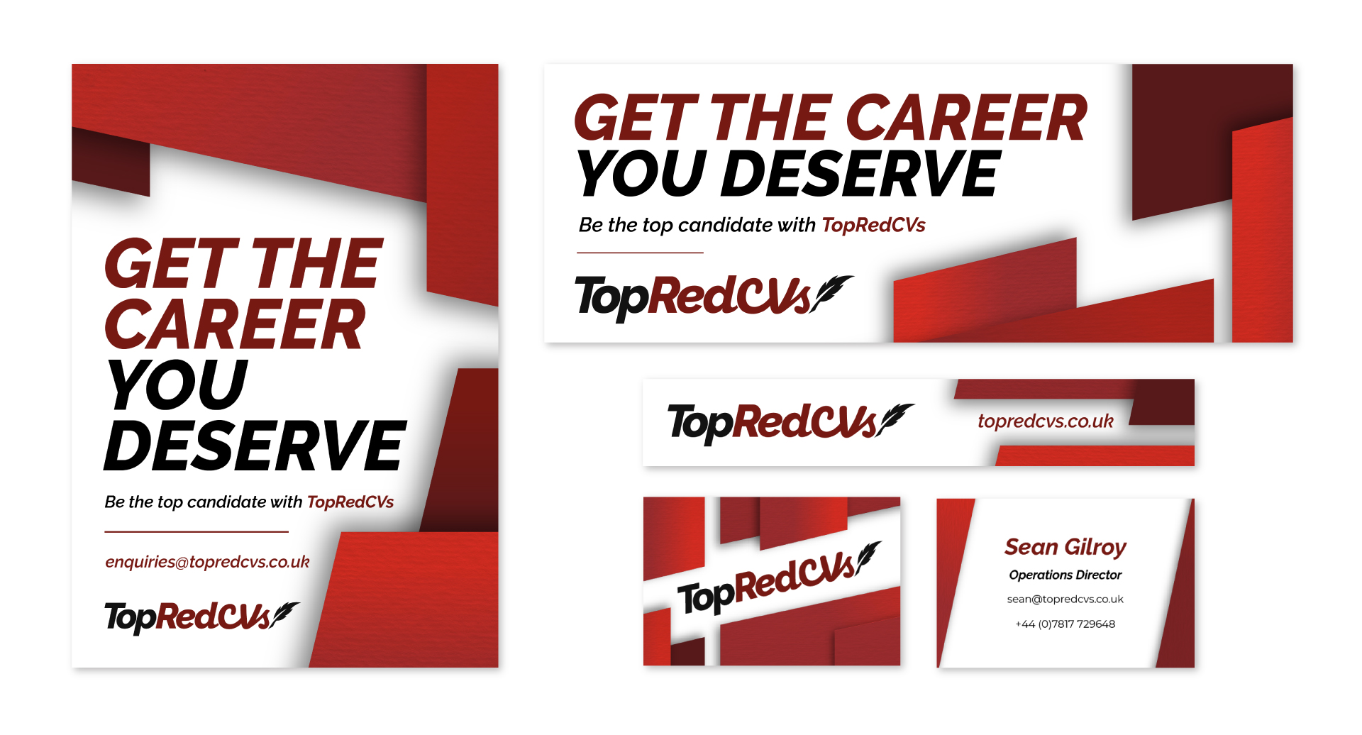 TopRedCVs is a CV writing service. They asked me to create them a new but low budget logo and branding, alongside some social media and print assets.