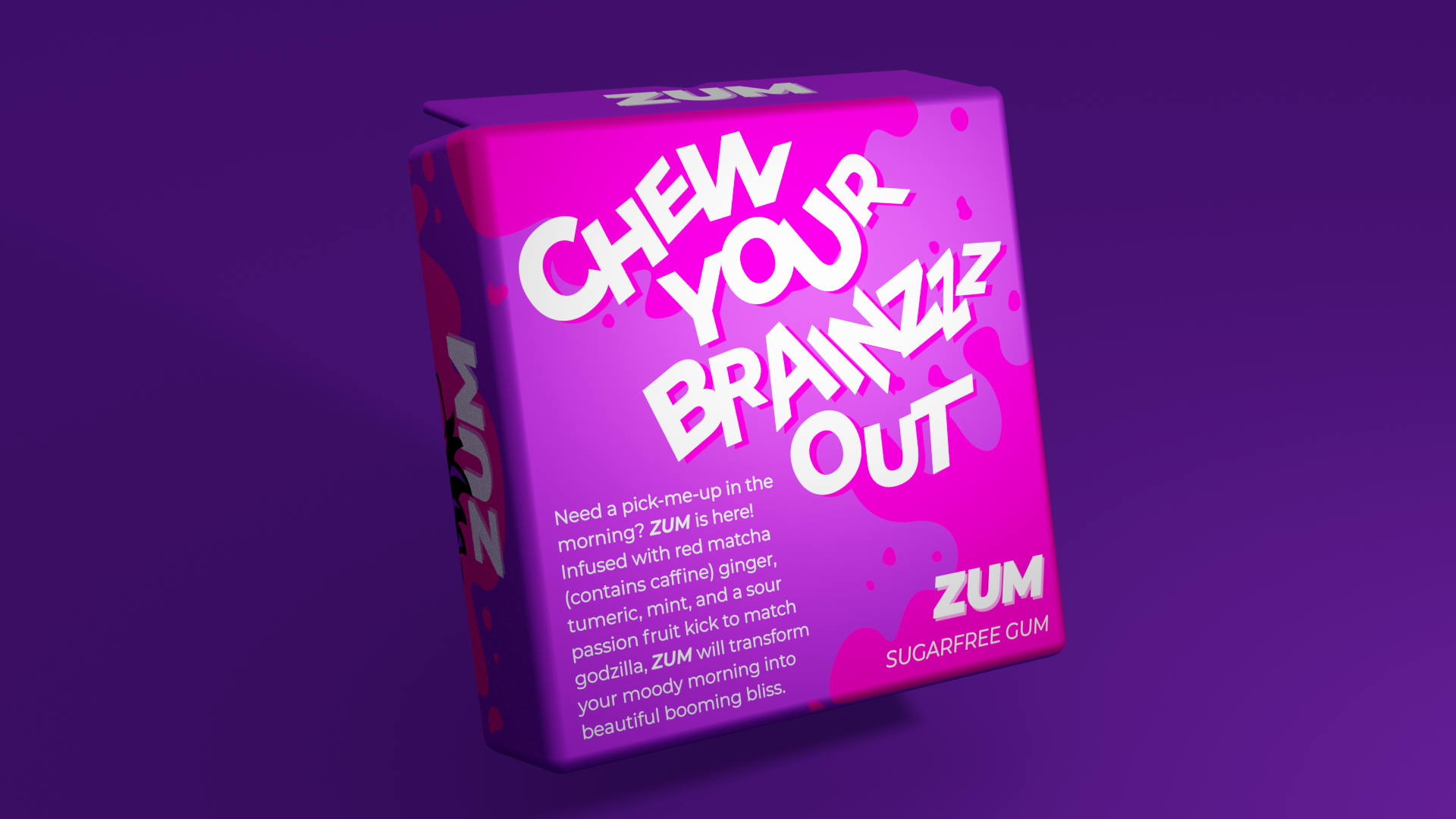 Zum is a brand of intensely flavoured bubble gum not for the faint hearted. The packaging is designed to be bold and eye-catching, with a strong emphasis on the flavour of the gum. I was hired to develop the packaging and illustration, with a placeholder for the logo. The packaging is designed to be easily recognisable and stand out on the shelf. It was designed in collaboration with an entrepreneur for a project of theirs, as part of my freelance activities.